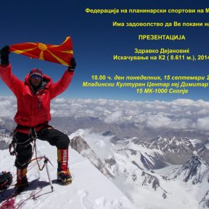 Федерација на планинарски спортови на Македонија Има задоволство да Ве покани на ПРЕЗЕНТАЦИЈА Здравко Дејановиќ Искачување на К2 ( 8.611